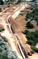 Construction of steel mains conduit Dia 200, length of 18km for the increase of flow capacity in Mornos Aqueduct for the water supply of Athens, year 2002