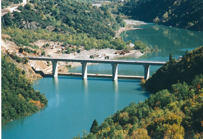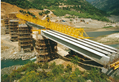 Construction of Evinos precast prestressed concrete bridge of 200m in length, 30m clearance span 37m, year 2003